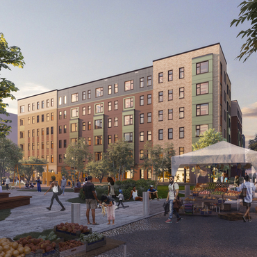 The Bunker Hill redevelopment project, which broke ground on its first building in June 2023, is a multi-phase public-private partnership among the Joseph J. Corcoran Company, Leggat McCall, the Boston Housing Authority and the Charlestown Resident Alliance (CRA), which will replace 1,100 public housing units with 2,699 units with a mix of public, income-restricted, and market rate rental units. This model of mixed-income housing is ideal for supporting healthy, diverse communities. The project also includes 73,000 square feet of retail and civic uses, off-street parking, and new public open space to support residents and the Charlestown community.