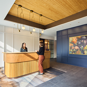 The project was designed with a commitment to sustainability and wellness, achieving LEED and WELL Gold certifications. Reusing 92% of the existing structure prevented the release of ~9,500 metric tons of CO2 compared to new construction, equal to 11,511 acres of forest CO2 sequestration for 1 year.