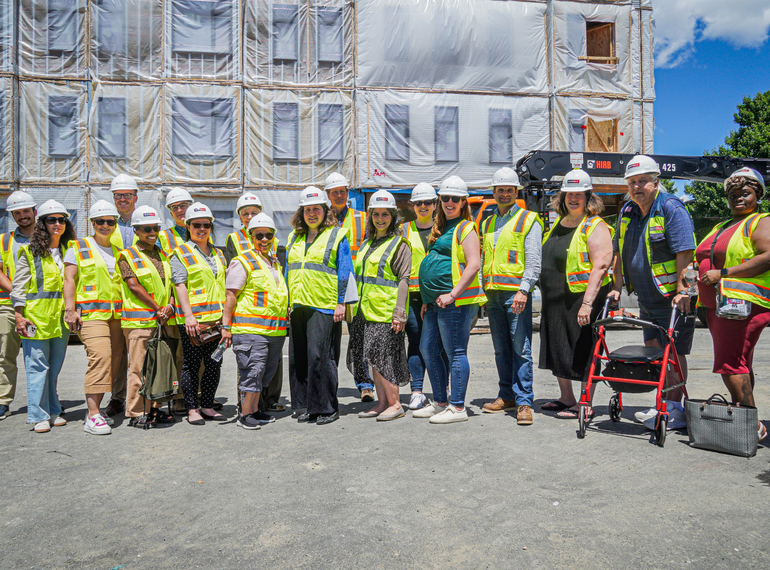 Last week, LMP was joined by the Charlestown Resident Alliance, Boston Housing Authority, and members of the project team to celebrate the construction progress at the Bunker Hill Housing Redevelopment. The first building is now 65% complete and fully enclosed. We would like to thank the Charlestown community, elected leaders, and the hardworking construction crew at Suffolk Construction and and design team at Stantec for their dedication and support. The project is on track to welcome the first families back in December 2024!