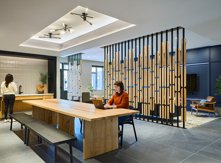 The project was designed with a commitment to sustainability and wellness, achieving LEED and WELL Gold certifications. Reusing 92% of the existing structure prevented the release of ~9,500 metric tons of CO2 compared to new construction, equal to 11,511 acres of forest CO2 sequestration for 1 year.